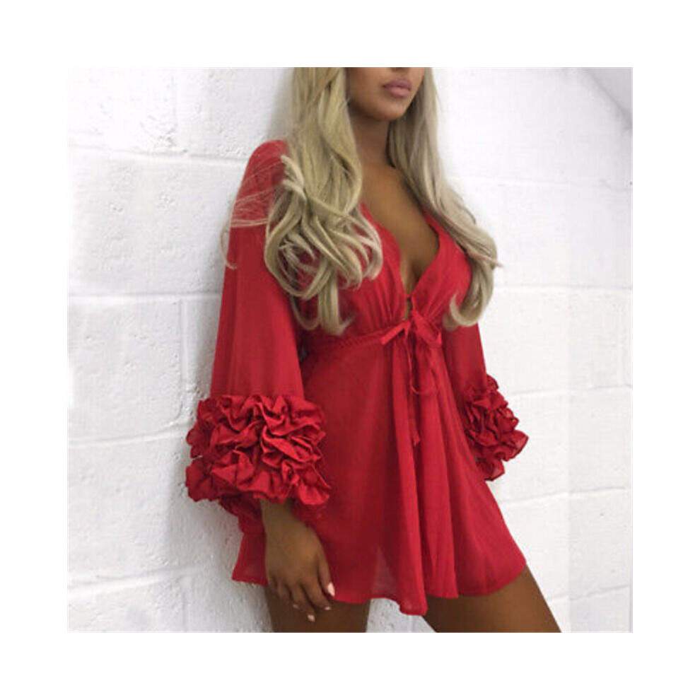 Women Sexy Backless Bikini Cover-ups Summer Ladies Long Sleeve Solid See Through Club Beach Mini Dress Beachwear