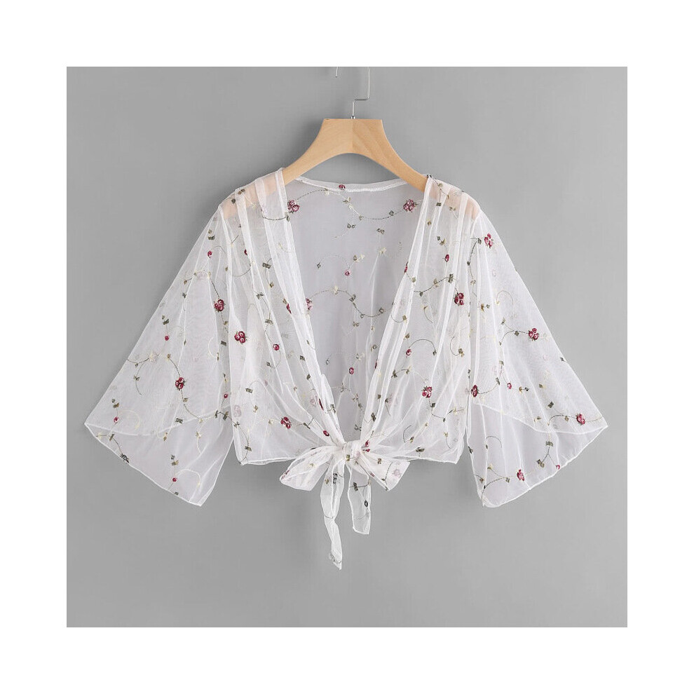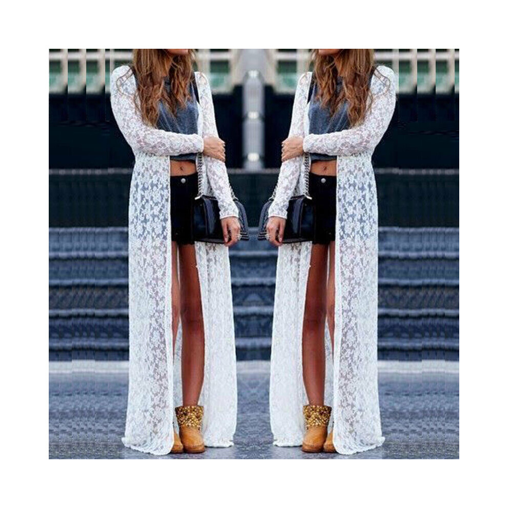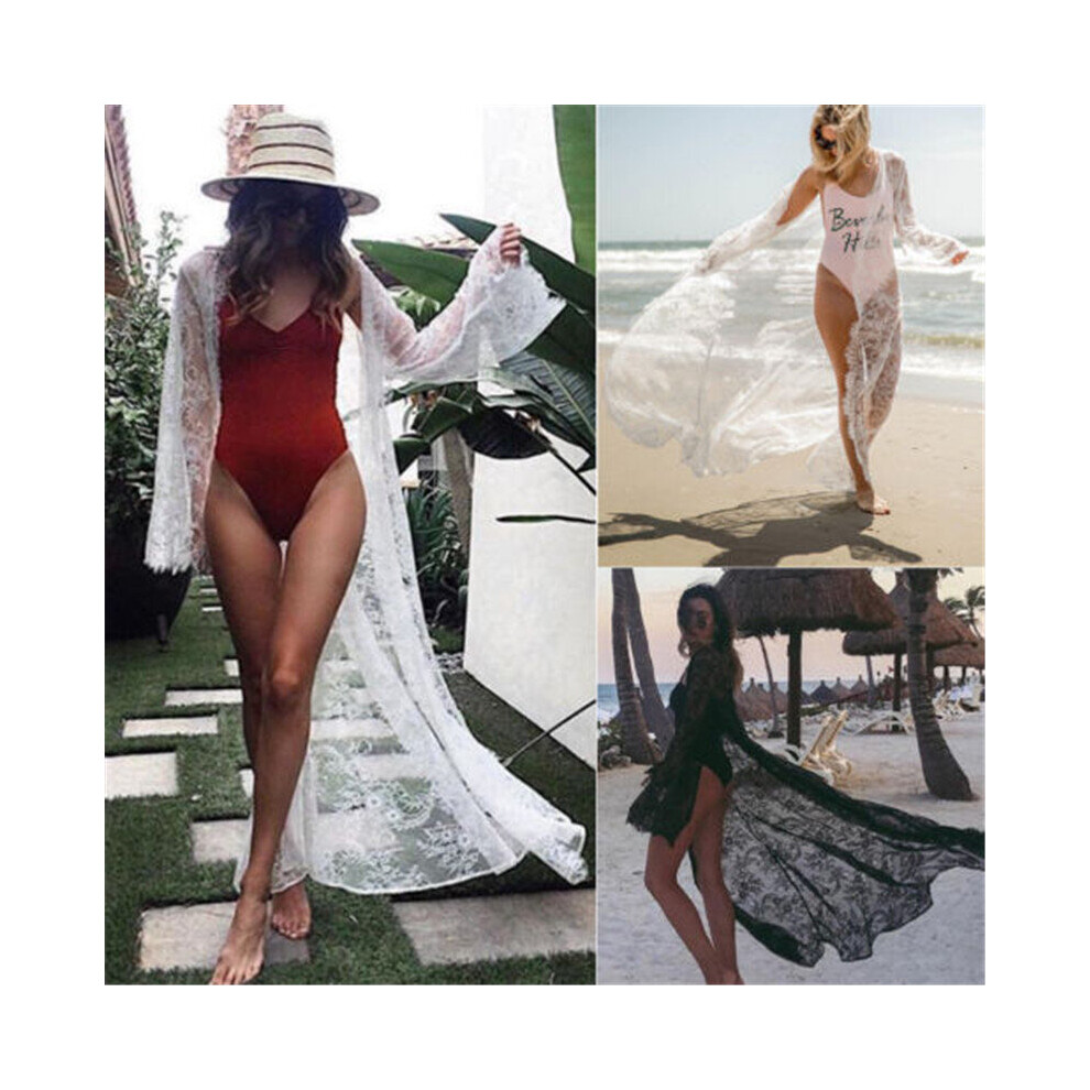 Ladies Women Long Sleeve Floral Lace Beach Long Cardigan Casual Bikini Cover Ups Wrap Beachwear