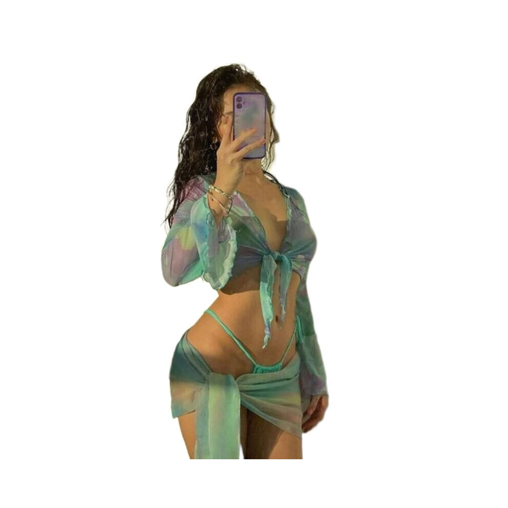 Ladies Swimsuit Comfortable Tie Dye 3-Piece Knotted Swimming Suit Push Up Wrap Beachwear Gather Bikini with Cover Ups