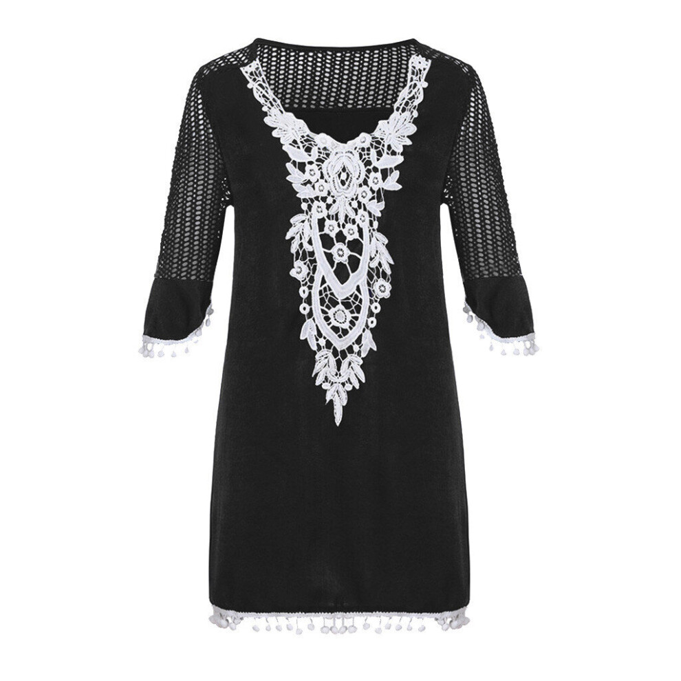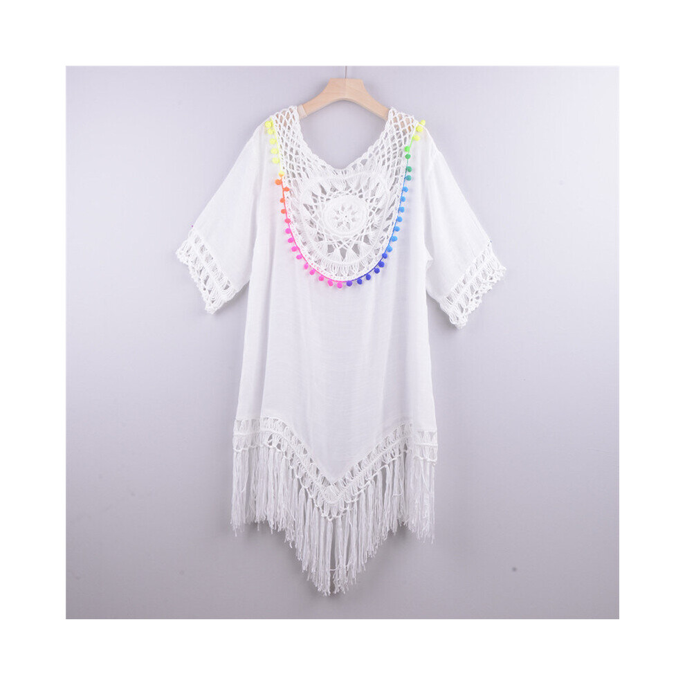 Woman Beach Cover Up Dress Boho Tunic Beachwear Summer Ladies Lace Tassel Stitching Bathing Suit Women's Swimsuit Cover-Ups