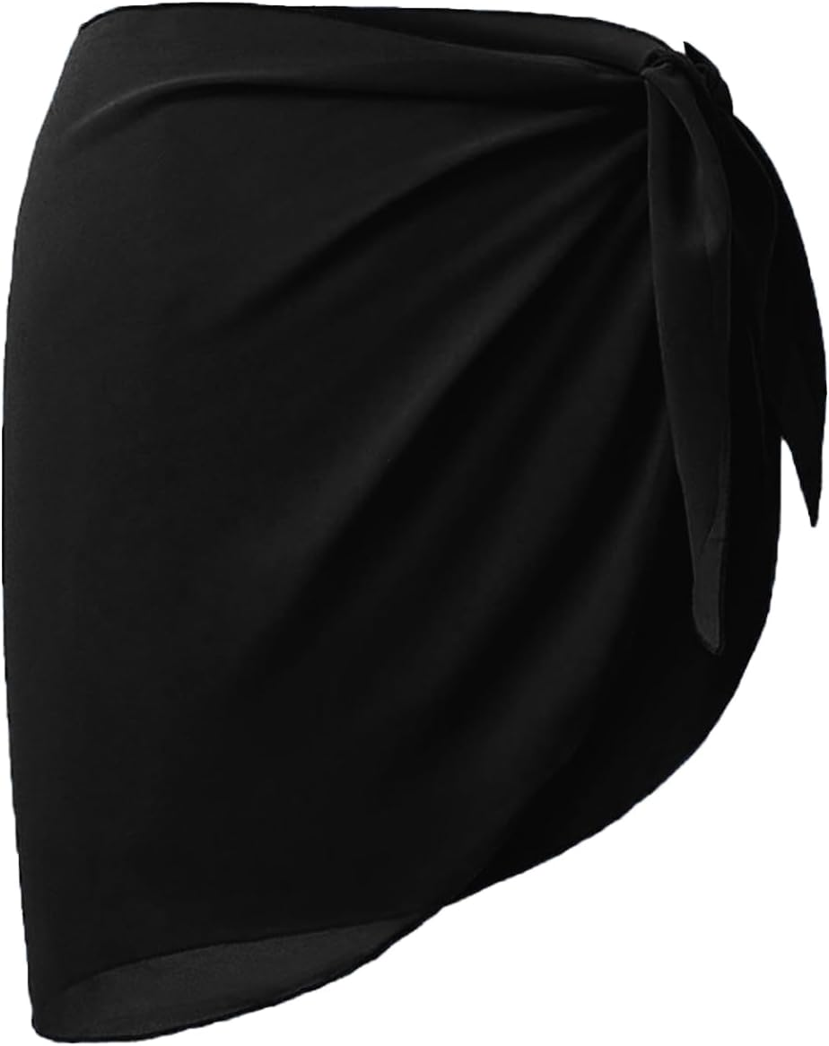 1 PCS Women Beach Wrap, Sarong Cover Ups Sexy Chiffon Ladies Beachwear, Black Half Beach Cover Up Sarongs and Wraps Swimsuit Wrap Skirts for Bikini Summer Holiday Solid Color Pleat