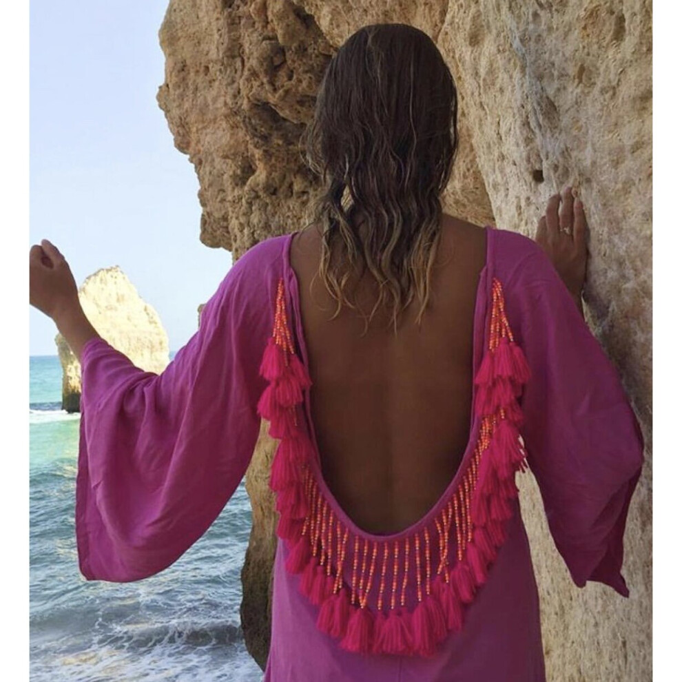 Women Dresses Summer Cover Ups for Swimwear Women Beachwear Ladies Outlet Tassel 3/4 Sleeve Bathing Suit Swimsuit Cover-up