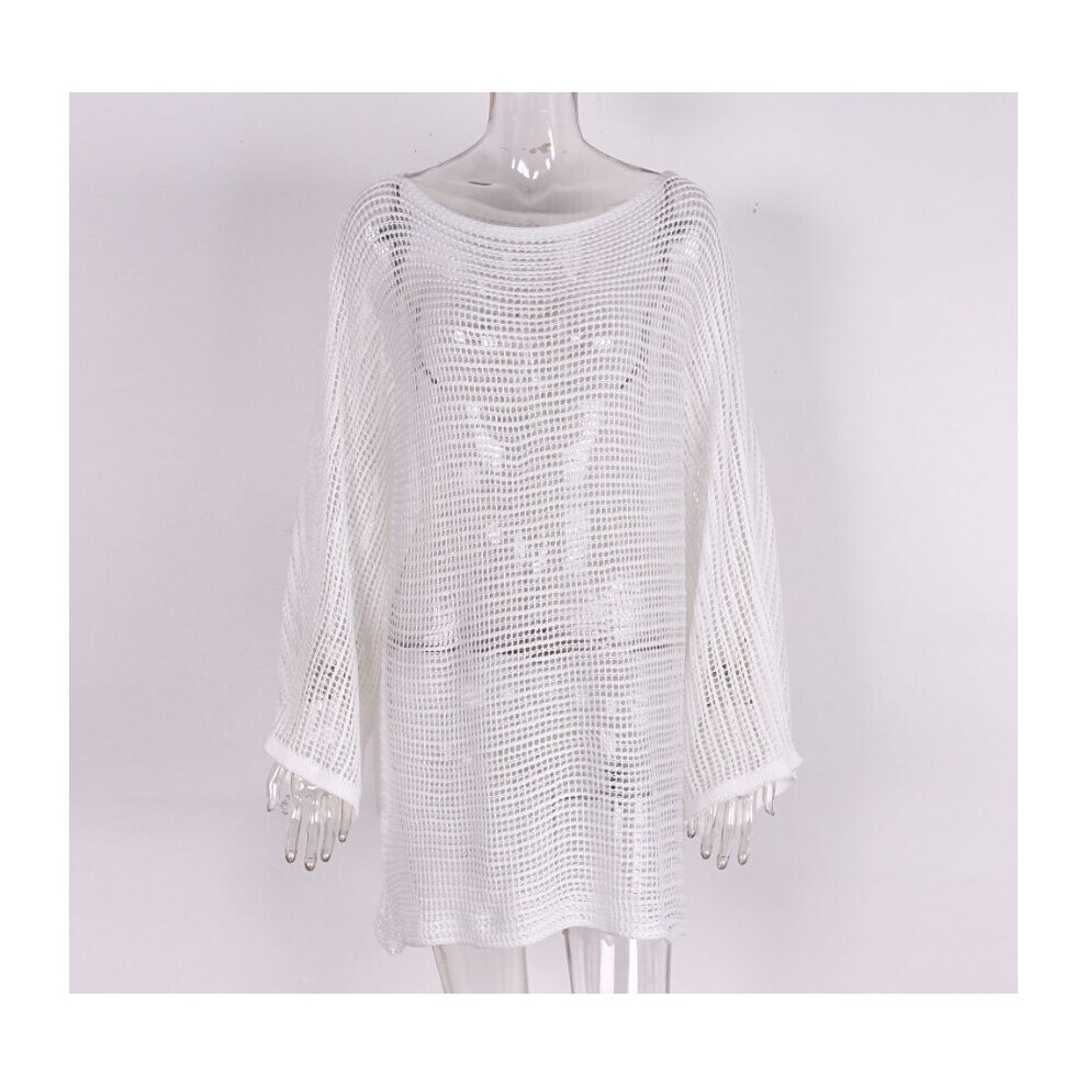 Women Swimsuit Bikini Cover-Ups Casual Ladies Hollow Out Fish Net Long Sleeve Mini Dress Beachwear for Ladies Holiday Beachwears