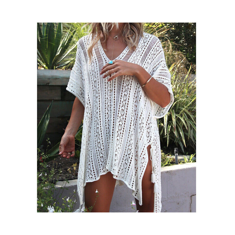 Sexy Women Beach Cover Up Solid Long Crochet Ladies Beach Dress Tunic Bikini Cover-Ups Beachwear Female Suits