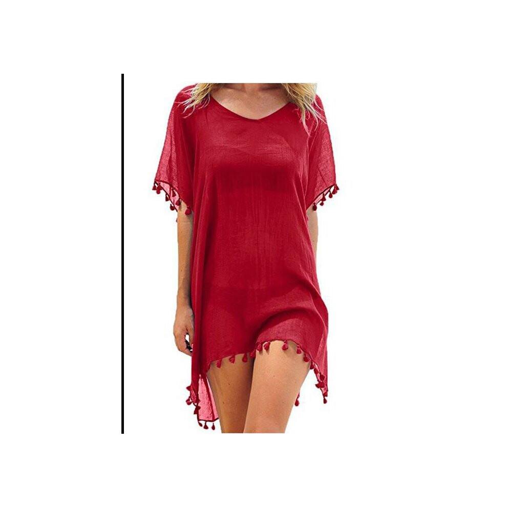 Meihuida Vintage Women Beach Dress Solid Mesh Cover-Ups Beachwear Ladies Tassel Swimwear Short Sleeve Bathing Chiffon Cover Up