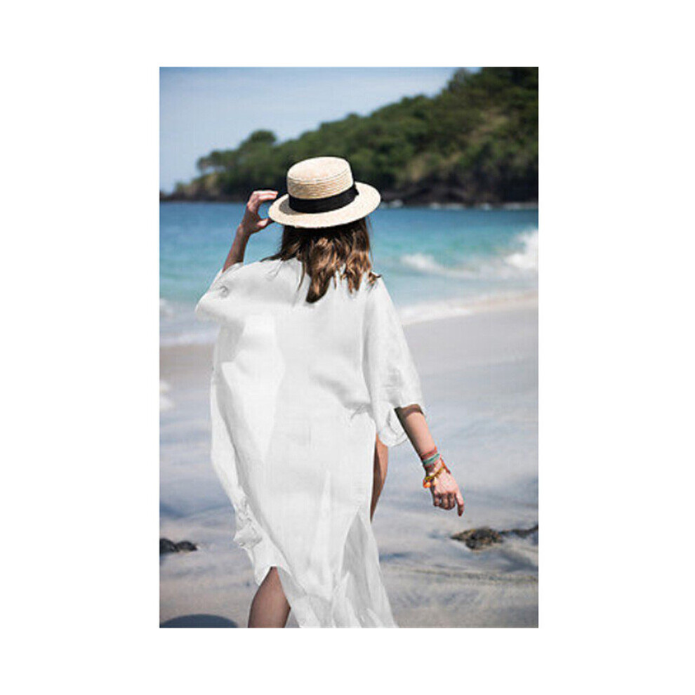 Ezranova Sarongs for Women Beachwear Beach Women's Swim Cover-ups & Sarongs Swimwear, Beach Coverups for Women UK Sexy Chiffon Ladies Beachwear white