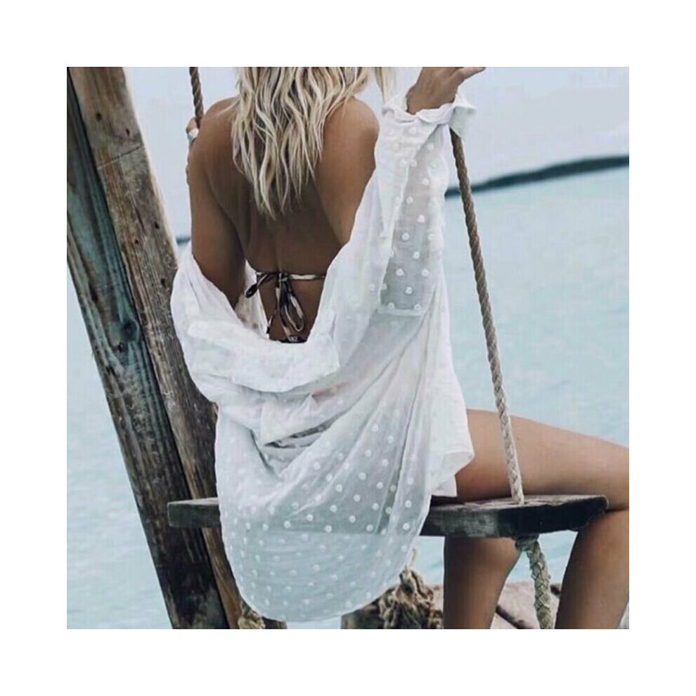 Women Polka Dot Cover-Ups Long Sleeve Shirt Top Ladies Transparent Loose Blouse Sexy Ladies Beachwear Cover Up
