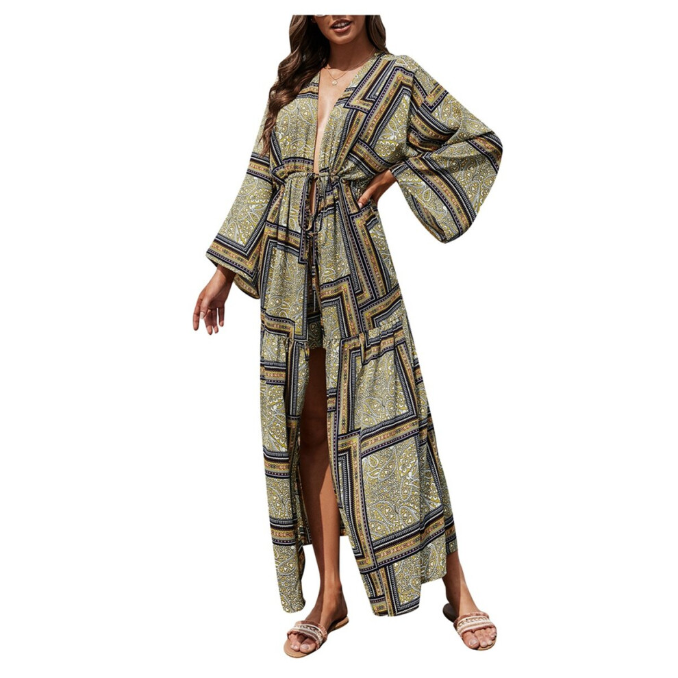 Womens Chiffon Kimono Cardigan Beachwear Bikini Cover-Ups Wrap Beachwear Holiday Ladies Long Sleeve Dress Green