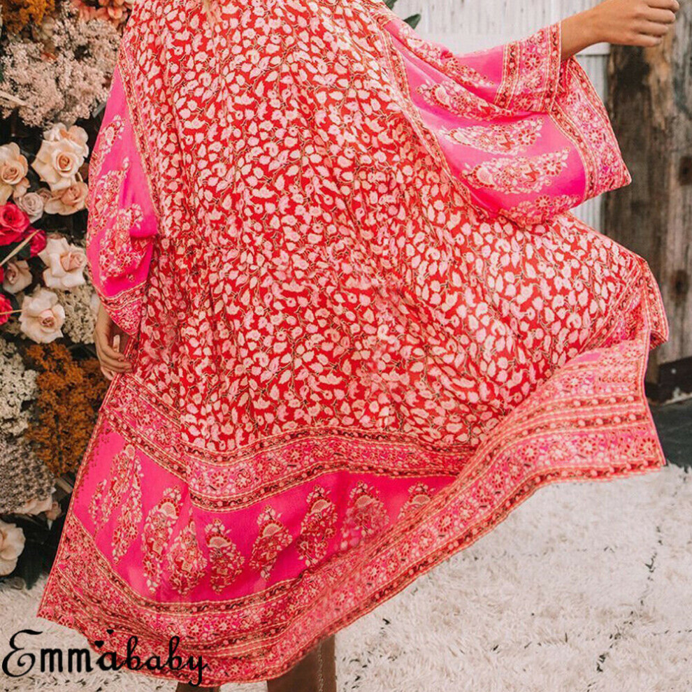 Ladies Women Beachwear Cover-Ups Flower Printed Loose Cardigans Summer Boho Floral Coat Shawl Kimono Outwear