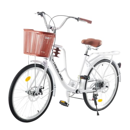 24/26 inch 7 Speed Gears Hybrid Transmission City Bikes, Vintage Ladies Bike with Basket City Classic Bicycle Adjustable Seat (24 Inches)