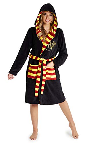 Harry Potter Dressing Gown, Adult Fleece Hooded Dressing Gowns For Women Or Men (S, Black)