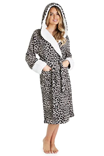 CityComfort Dressing Gown Women, Fluffy Bath Robes for Women, Gifts for Her (M, Leopard Black/Brown/Beige)