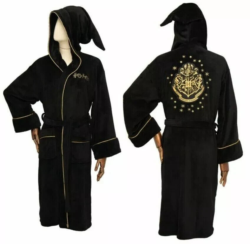 Ladies Bathrobe Harry Potter Hogwarts Black & Gold Birthday Gift Dressing Gown