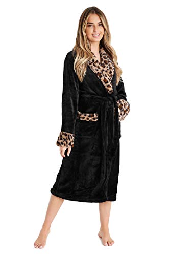 CityComfort Dressing Gown Women, Fluffy Bath Robes for Women, Gifts for Her (L, Leopard Black/Brown/Beige)