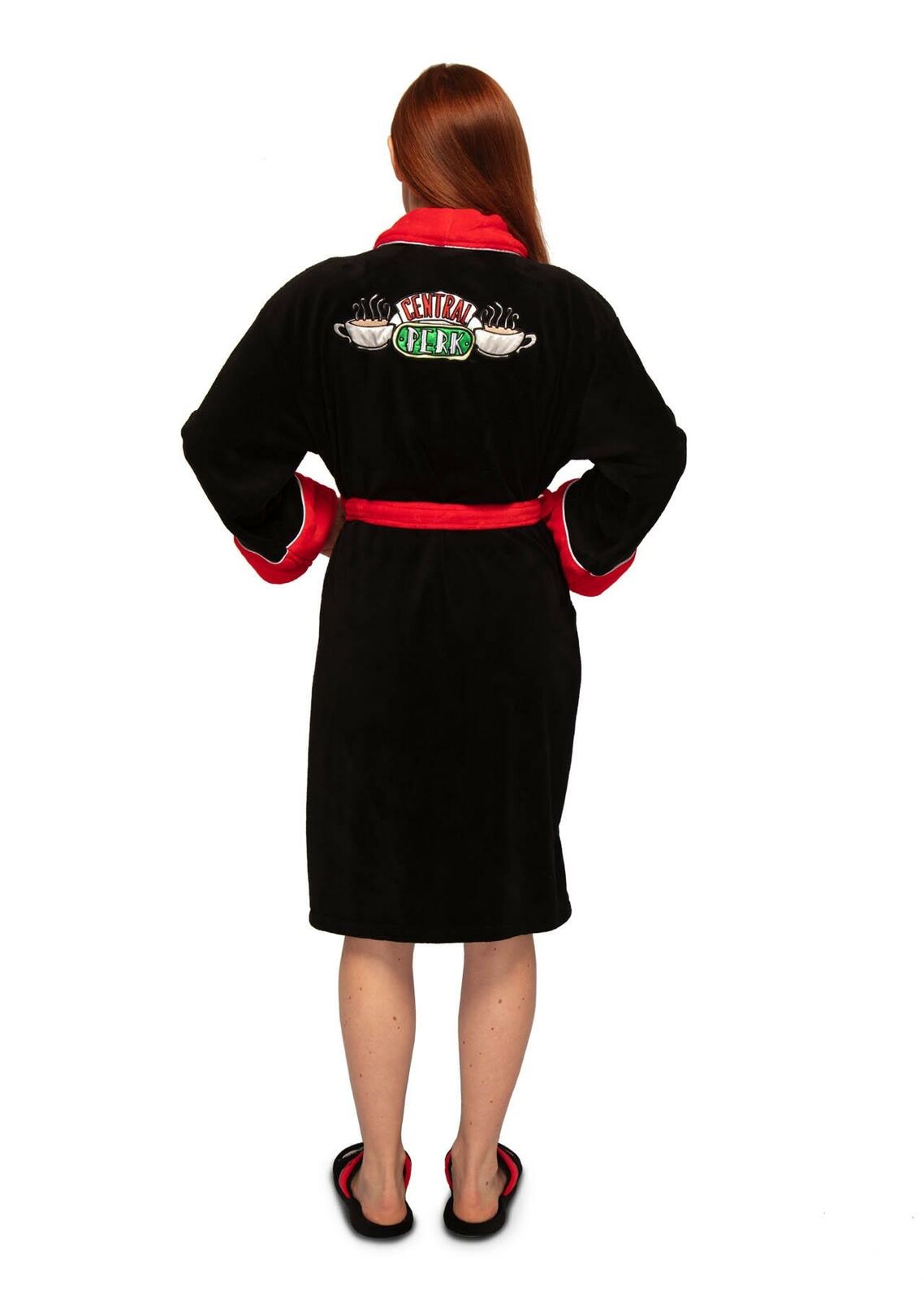 Friends Ladies Bathrobe Black & Red Fleece Women’s Dressing Gown Central Perk