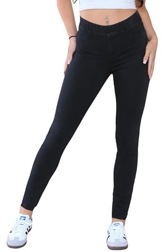 Ex Famous Store Pull On Jeans for Women UK 6-22, High Waisted Stretchy Ladies Skinny Denim Jeggings, Black