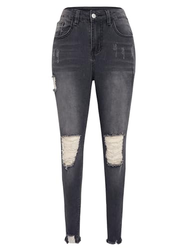 YUNDAI Womens Ripped Jeans Skinny Stretch High Waist Trousers Ladies Denim Slim Fit Pants Jeggings, X-Large Black