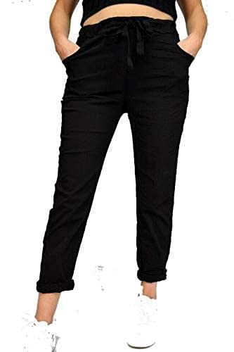 Women's Ladies Stretch Plain Magic Comfy Lagenlook Trousers Joggers Jeggings Pants Italian (Black, 16-18)