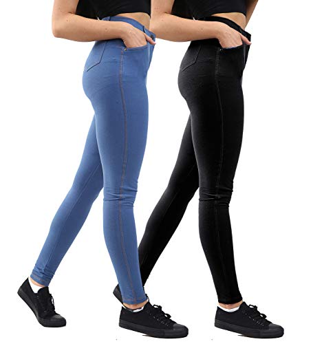 GW CLASSYOUTFIT 2X Women Jeans Ladies Denim Jeggings Pants (2 Pack) Leggings Ankle Length UK 8 10 12 14 16 18 (2X Black/Denim Blue, S-M 8-10)