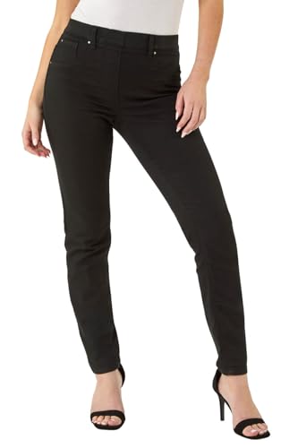 Roman Originals Jeggings for Women UK Jean Ladies Stretchy Trousers Denim Leggings High Waist Rise Pull On Skinny Straight Leg Cotton Pants Smart Casual - Petite Jet Black (28 inch) - Size 16