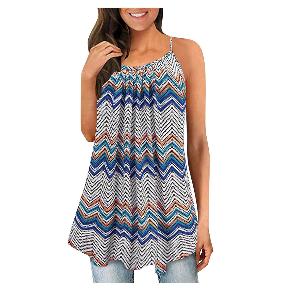 Tank tops women ladies summer casual tank top ladies spaghetti strap top ladies sleeveless round neck shirts ladies undershirts tops blue XXL