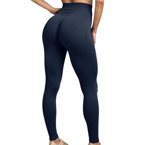 Ladies Gym Leggings, Pants for Women Yoga Trousers Workout Leggings for Women Butt Lifting High Waist Gym Yoga Compression Pants (Navy, L)