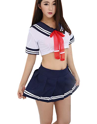 YUANMO Lingerie Set for Women Erotic Schoolgirl Cosplay Outfit Costume Ladies Crop Top with Mini Skirt