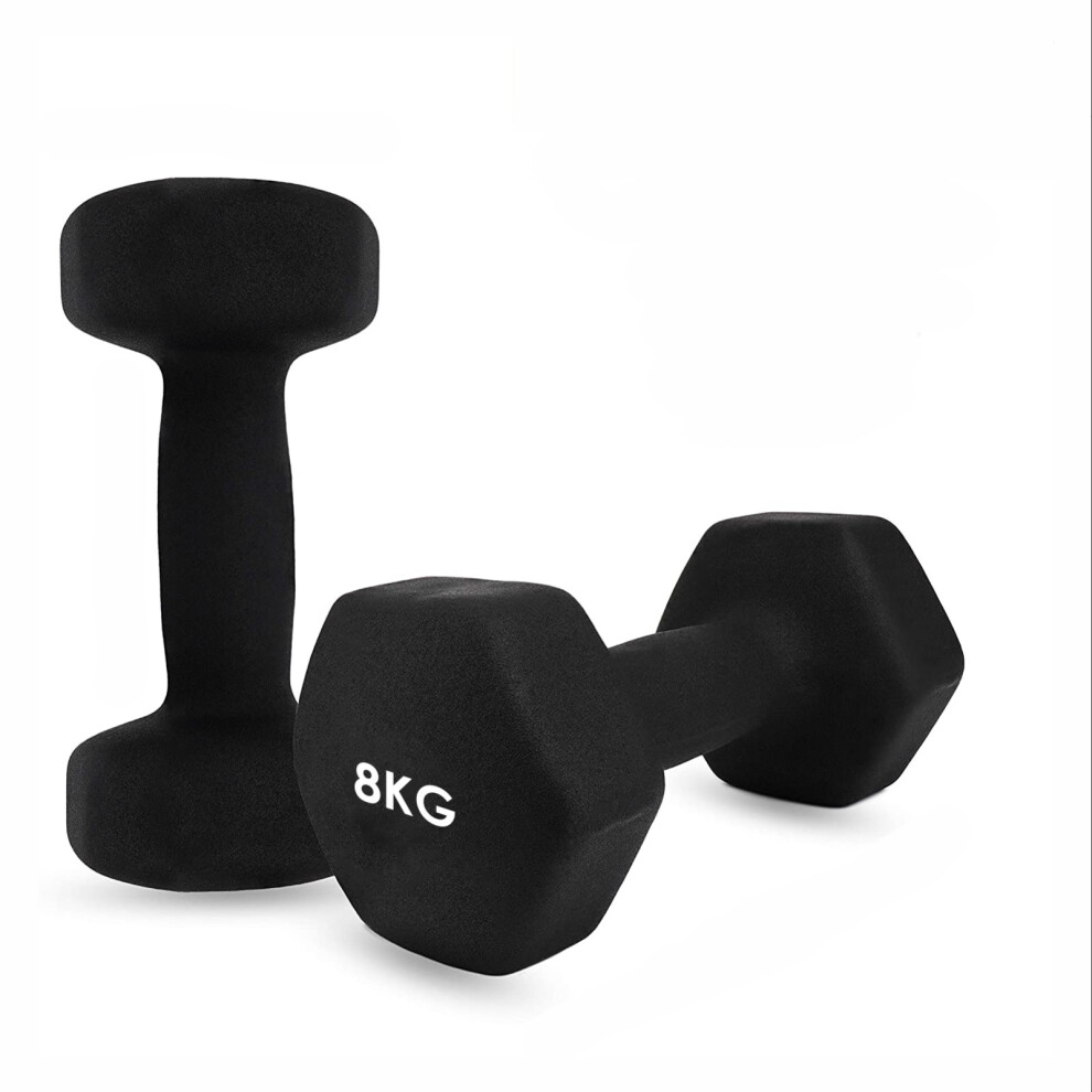 (2 x 8 Kg Black) Dumbbell Hand Weights Ladies Dumbells Set Men Cast Iron Fitness Yoga Home Gym UK