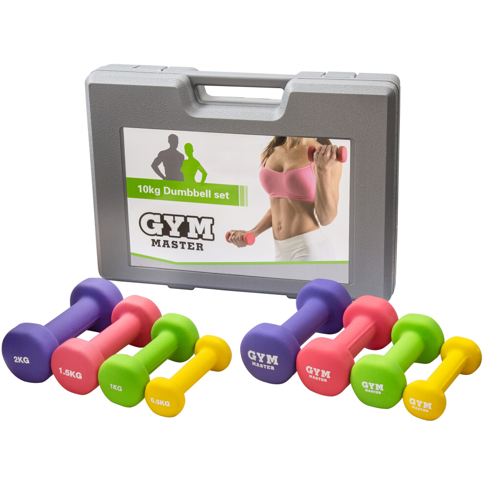 GYM MASTER Dumbbell Weights Set Kit Aerobics Gym Class Workout Ladies Yoga Pilates 10kg