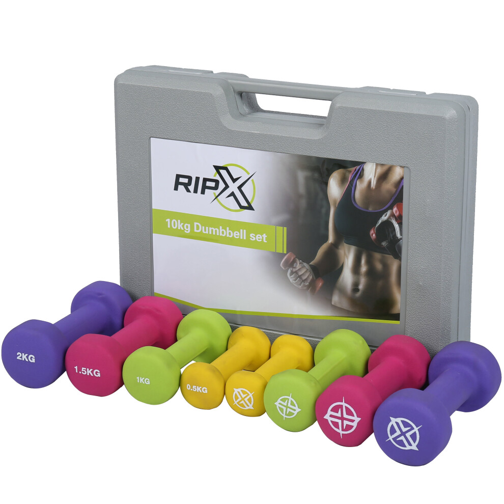 RIP X Dumbbell Weights Set Kit Aerobics Gym Class Workout Ladies Yoga Pilates 10kg