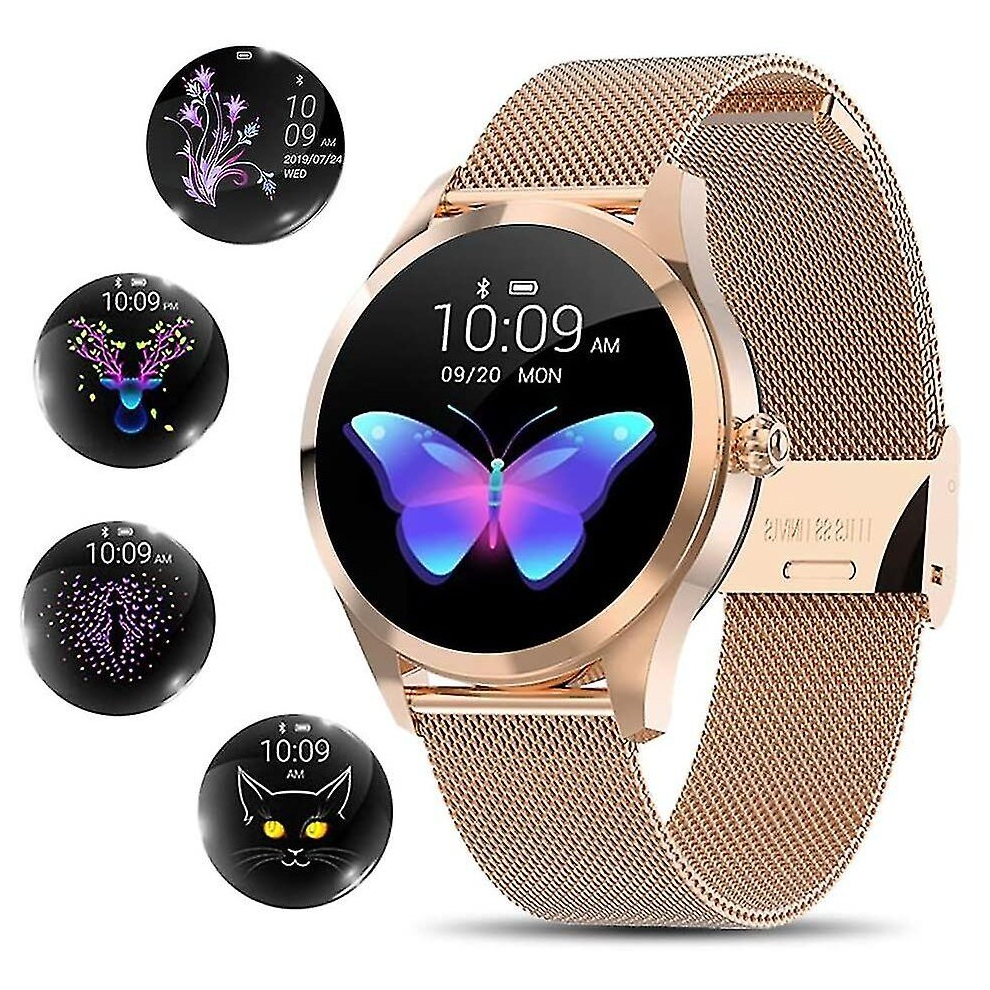 (Mesh Steel Gold) Men Women Smart Watch Ladies Watches for Android iPhone Samsung Fitness Tracker