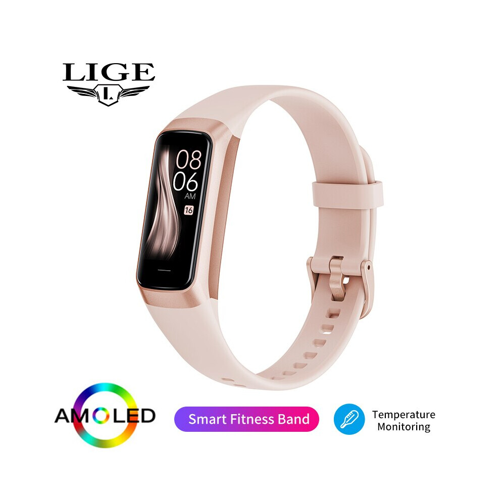 (call reminder, pink) LIGE New Women Smart Watch Men Smartband Temperature Smartwatch Fitness Tracker Blood Pressure Sports Smart Bracelet For Ladies