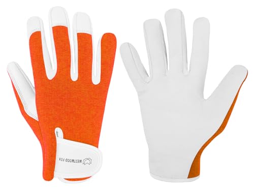 WESTWOOD FOX Ladies/Mens Leather Gardening Gloves Thorn Proof Rigger Garden work gloves, Safety Working Gloves, Premium Quality (Orange, M)