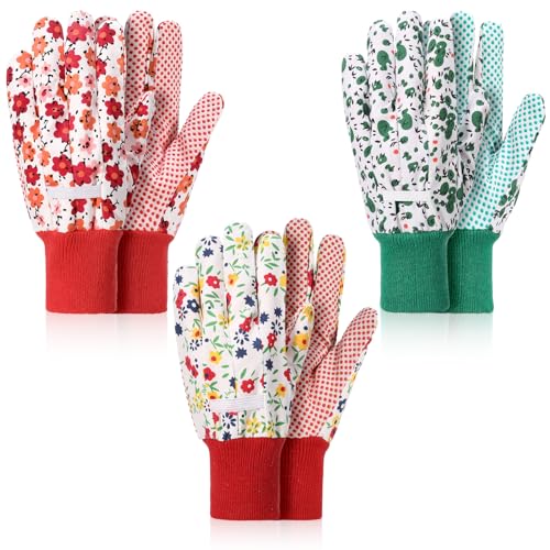 Firtink 3 Pairs Gardening Gloves for Women, Ladies Garden Glove Gardening Working Glove Floral Garden Gloves with Elastic Cuffs for Yard, Cleaning