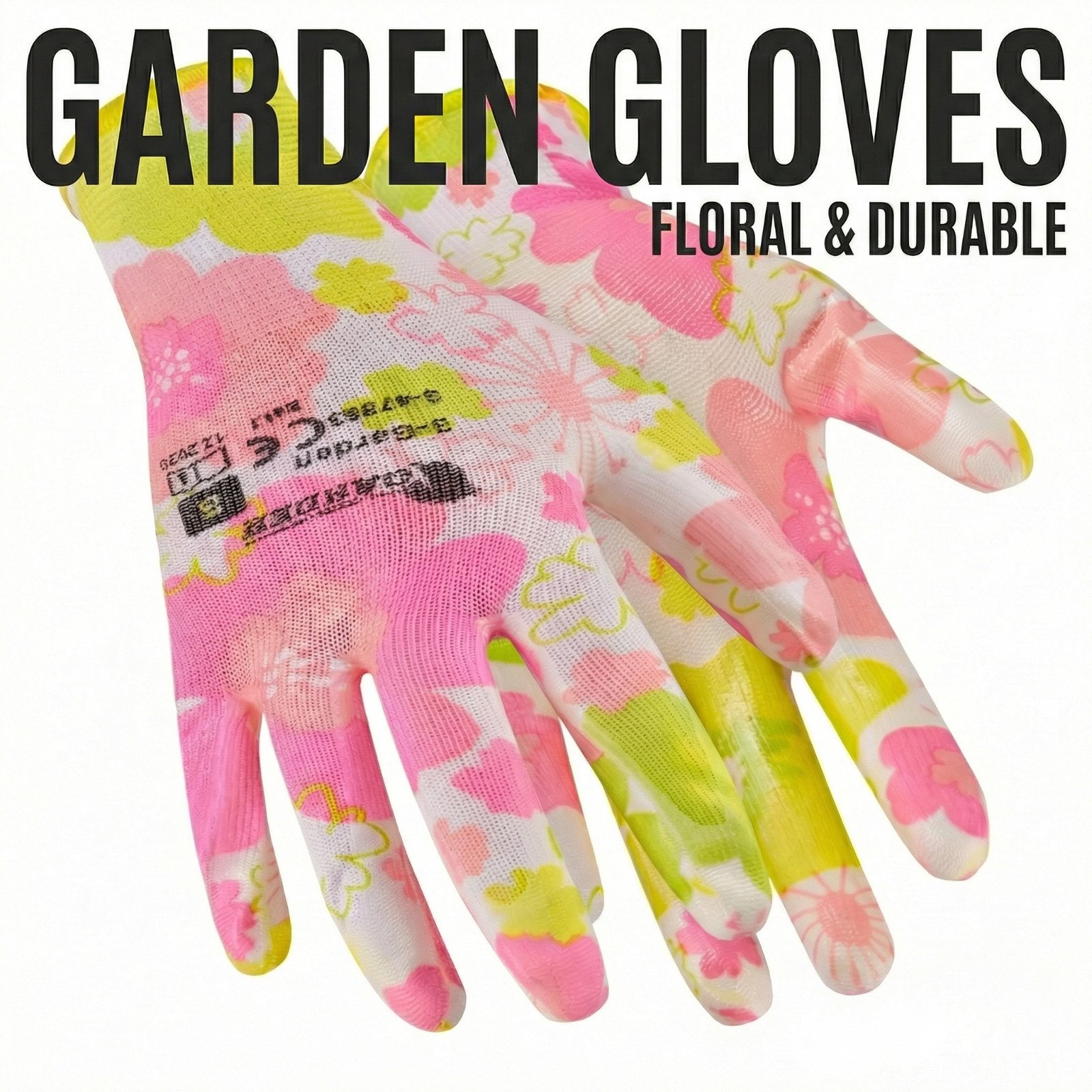 LADIES GARDENING GLOVES, Coated palm FLORAL pattern DIY Garden work Stalco