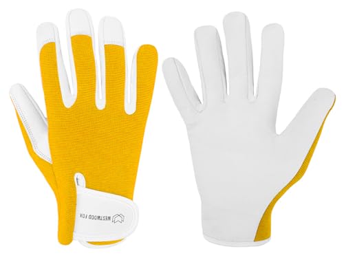 WESTWOOD FOX Ladies/Mens Leather Gardening Gloves Thorn Proof Rigger Garden work gloves, Safety Working Gloves, Premium Quality (Yellow, S)
