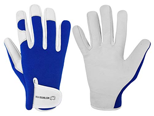 WESTWOOD FOX Ladies/Mens Leather Gardening Gloves Thorn Proof Rigger Garden work gloves, Safety Working Gloves, Premium Quality (Blue, L)