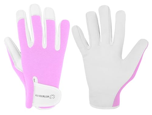 WESTWOOD FOX Ladies/Mens Leather Gardening Gloves Thorn Proof Rigger Garden work gloves, Safety Working Gloves, Premium Quality (Pink, M)