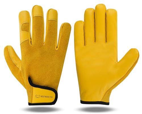 WESTWOOD FOX Gardening Gloves for Men Thorn Proof Garden Gloves Mens Working Ladies Gardening Gloves Rigger Tough Leather Work Gloves Grip Breathable Flexible Comfortable,Mechanics