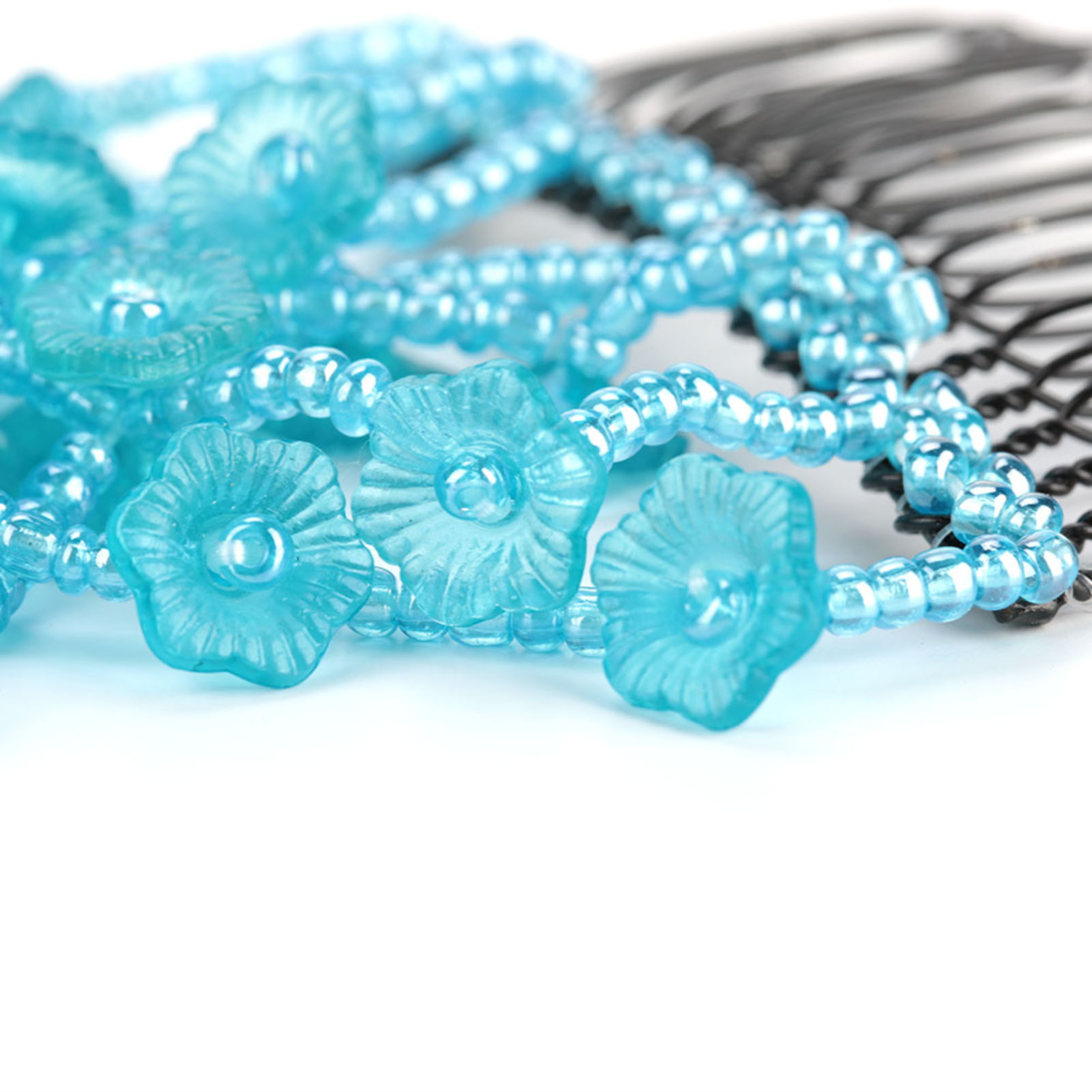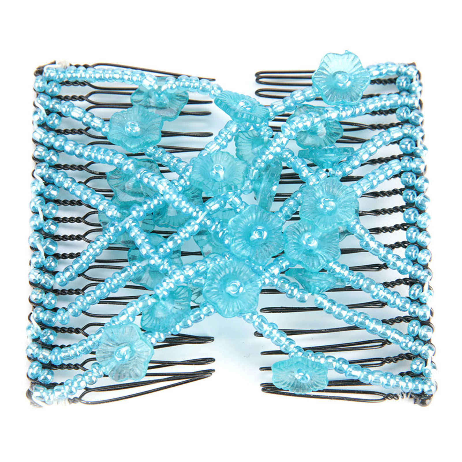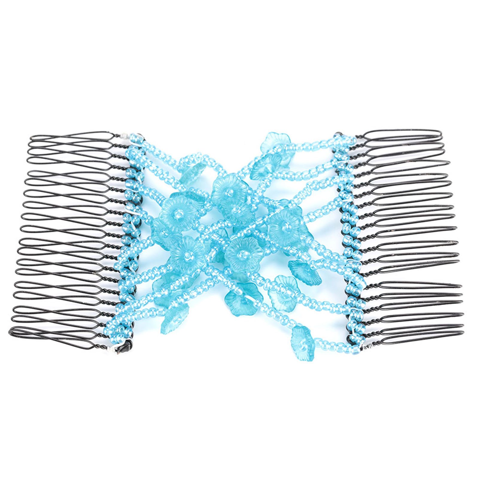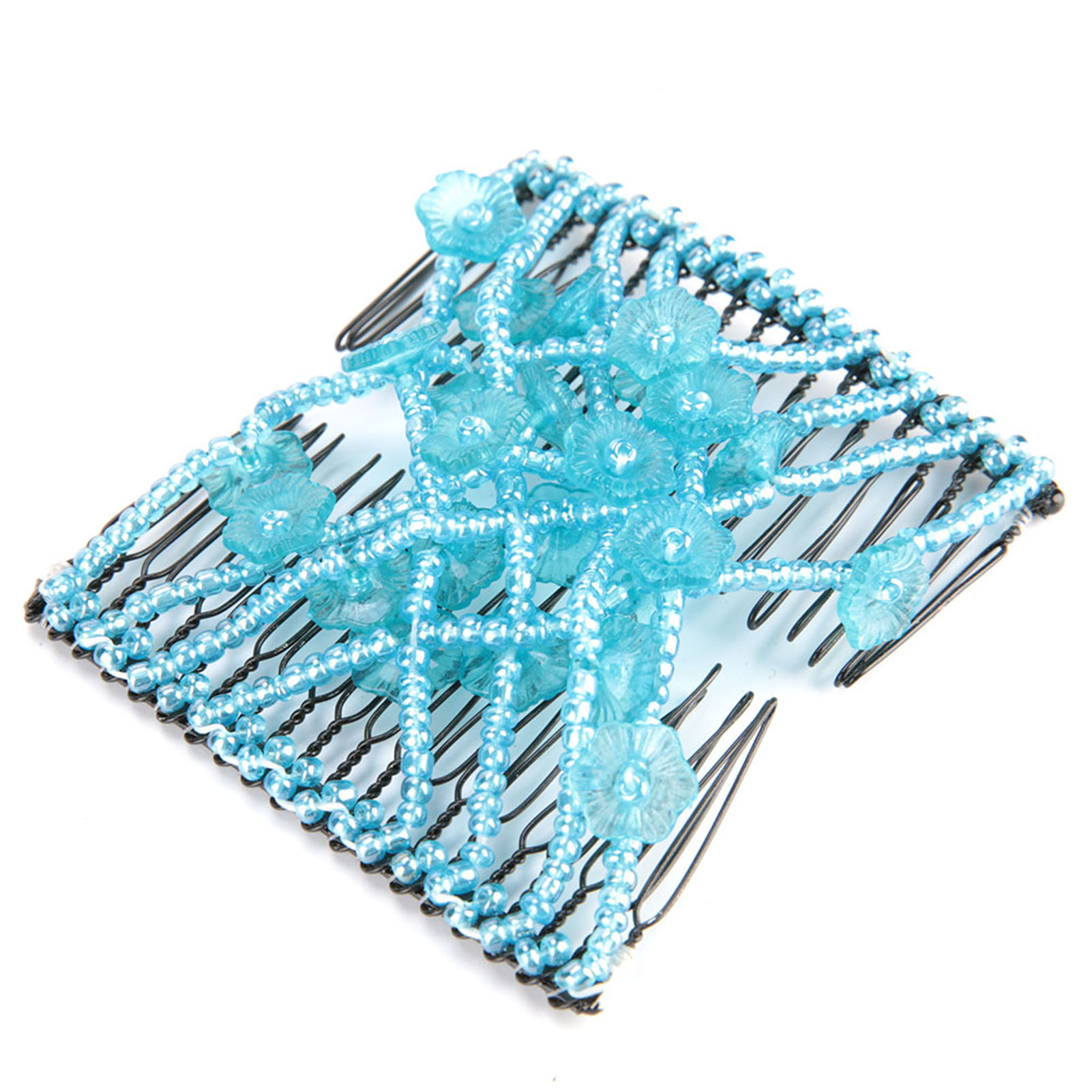 Ladies Party Hair Styling Double Slide Stretchy Flower Beads Clip Hiar Comb Cip
