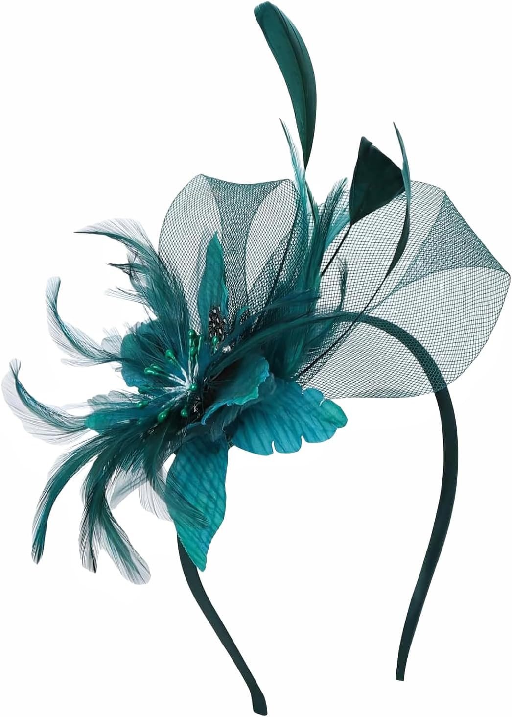 Finecy In New Women Ladies Small Feather Flower Hair Hat Fascinator Clip Pin Party Wedding Royal Ascot Race Green