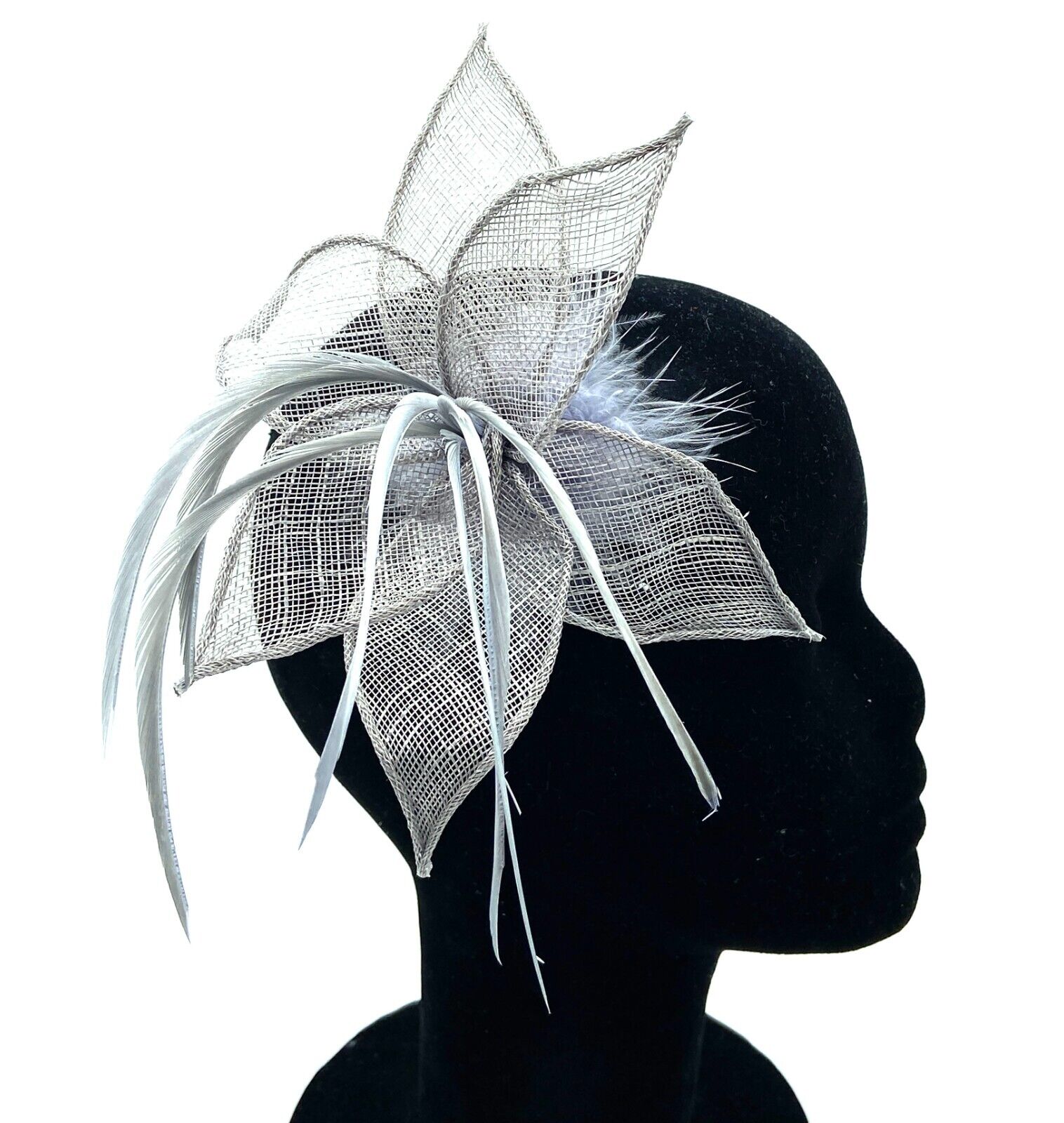 Ladies Silver Feather Fascinator Beak Clip Weddings Races Ascot Hair Piece