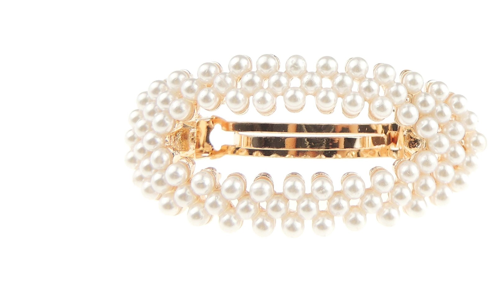Ladies Faux Pearl Crystal Diamante Small Hair Clip Barrette Oval Stencil