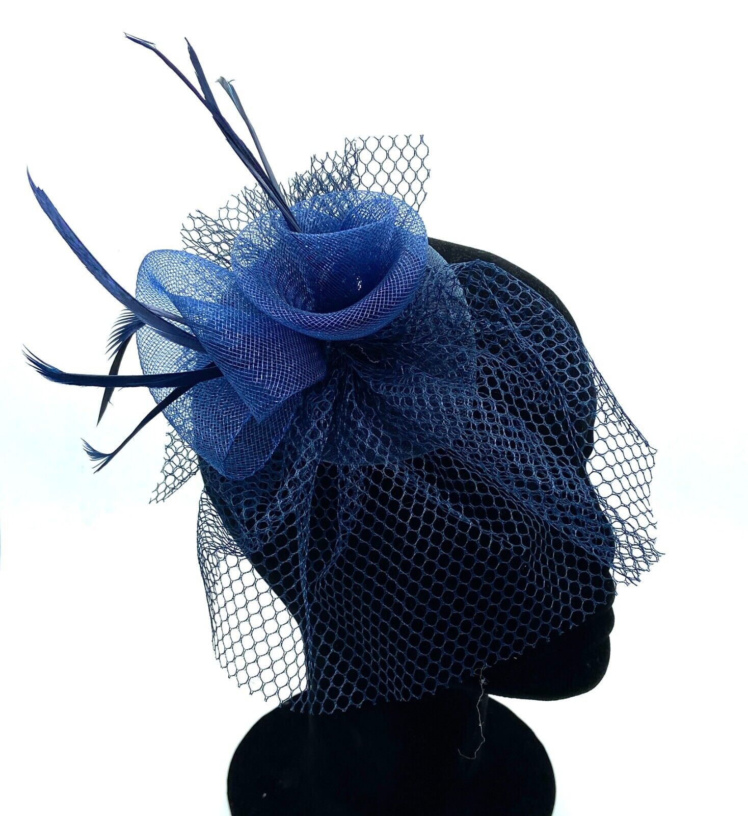 Ladies Navy Blue Feather Fascinator Clip Weddings Races Royal Ascot Hair Piece