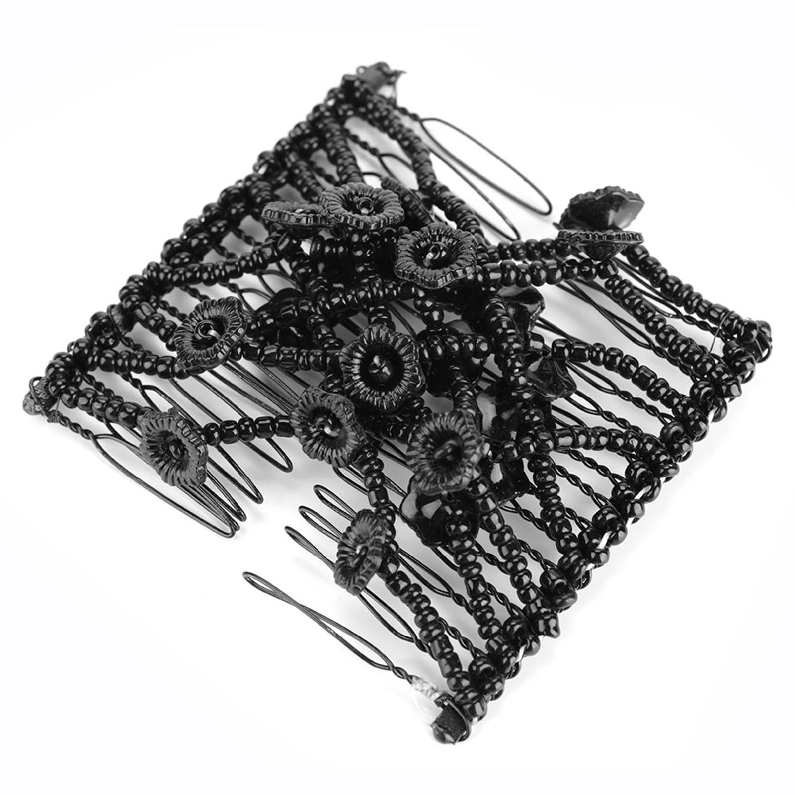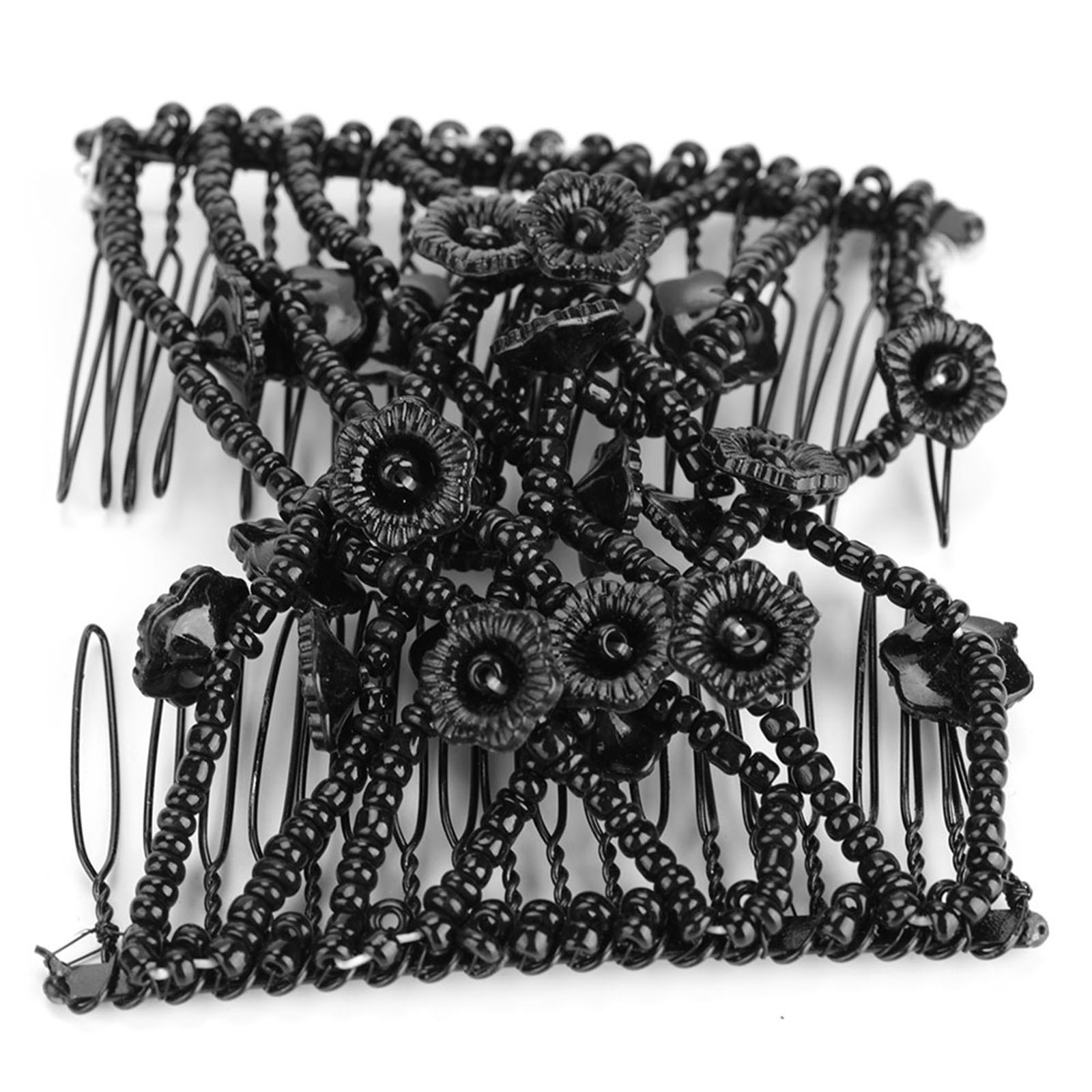 Black Ladies Party Hair Styling Double Slide Stretchy Flower Beads Clip Hia OU