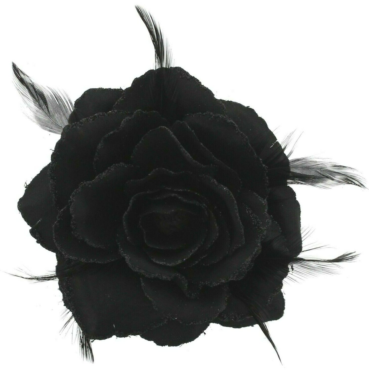 Glitter edge Rose Flower Beak Clip and Hair Elastic Ladies Fascinator Hair Black