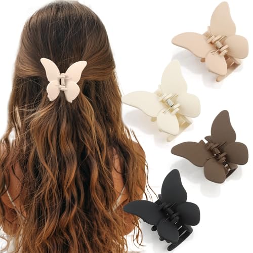 Butterfly Hair Clips, Earthy Elegant Cute Hair Clips, Hairs Clip for Girls, Ladies, Women, Milky-White Khaki Brown Black Non-Slip Hairs Clip for Thick, Thin, Long, Curly Hair(4PCs)