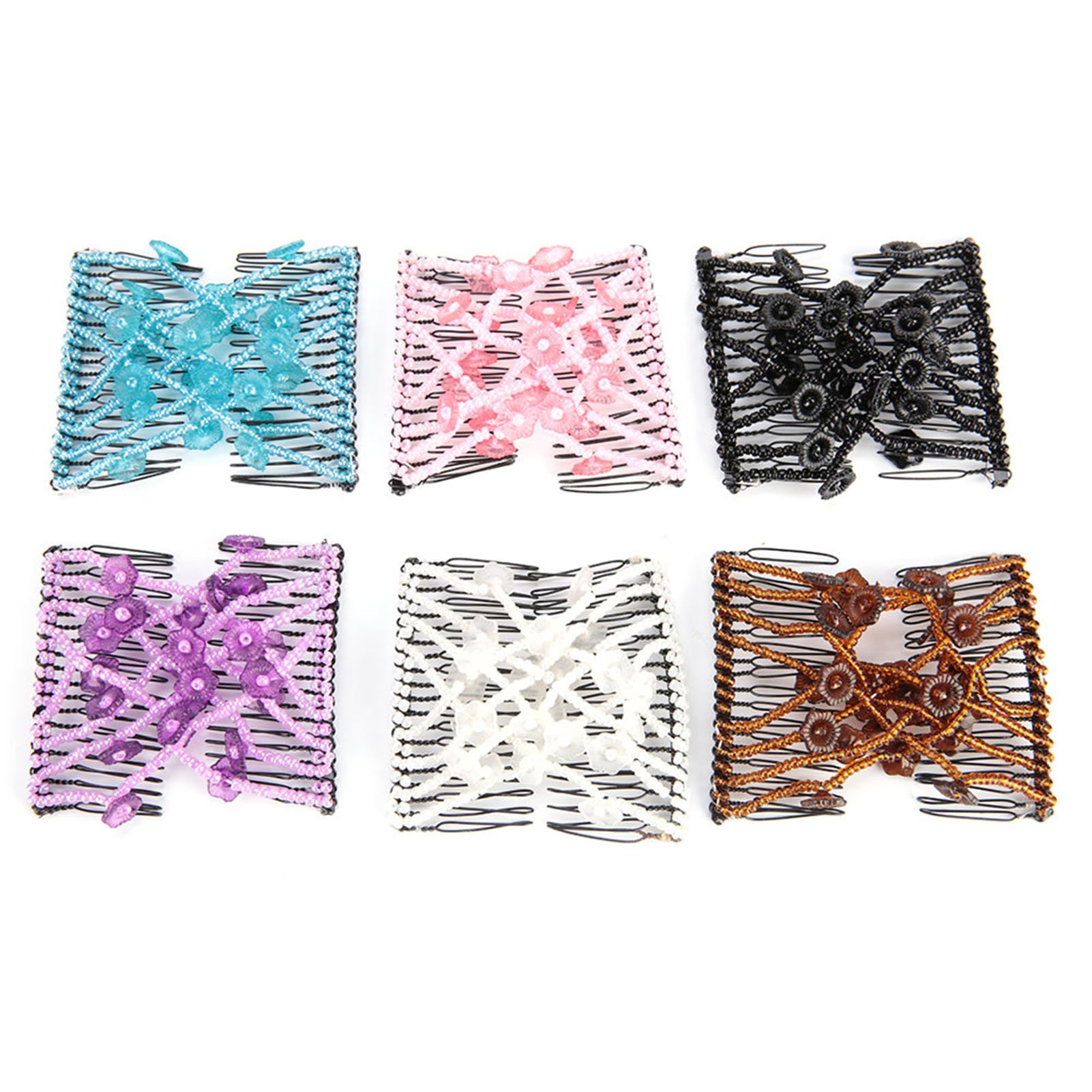 ¸Ladies Party Hair Styling Double Slide Stretchy Flower Beads Clip Hiar Comb CUT