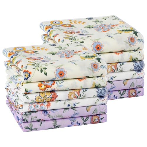 Handkerchiefs for Women, 12 Pcs Soft Floral Cotton Handkerchiefs with Single Corner Lace Style Reusable Washable Ladies Handkerchief for Wedding Party Daily Use
