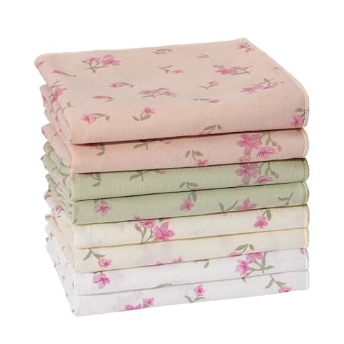 HOULIFE Floral Print Ladies Handkerchiefs Vintage Womens Handkerchiefs 60S Soft Cotton Women Hankies Colorful Flower Handkerchief, 8PCS